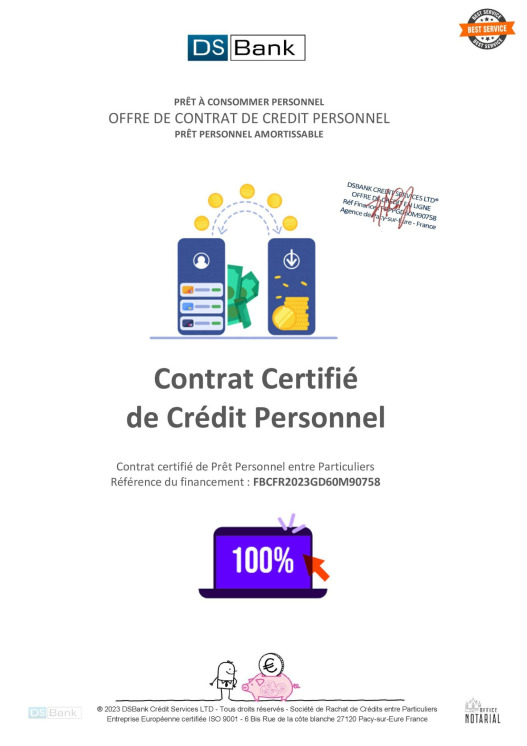 Seuls les profils vérifiés par simulation de paiement de 0,00€ via CB en ligne seront éligibles pour télécharger le contrat et valider le crédit sur leur compte en ligne avec envoi des codes d'accès de connexion 100% sécurisé par nos Banques européennes partenaires